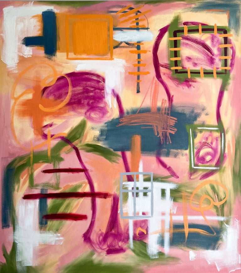 Garden of Eden. Oil, oil stick on Canvas. 64 x 72 in.